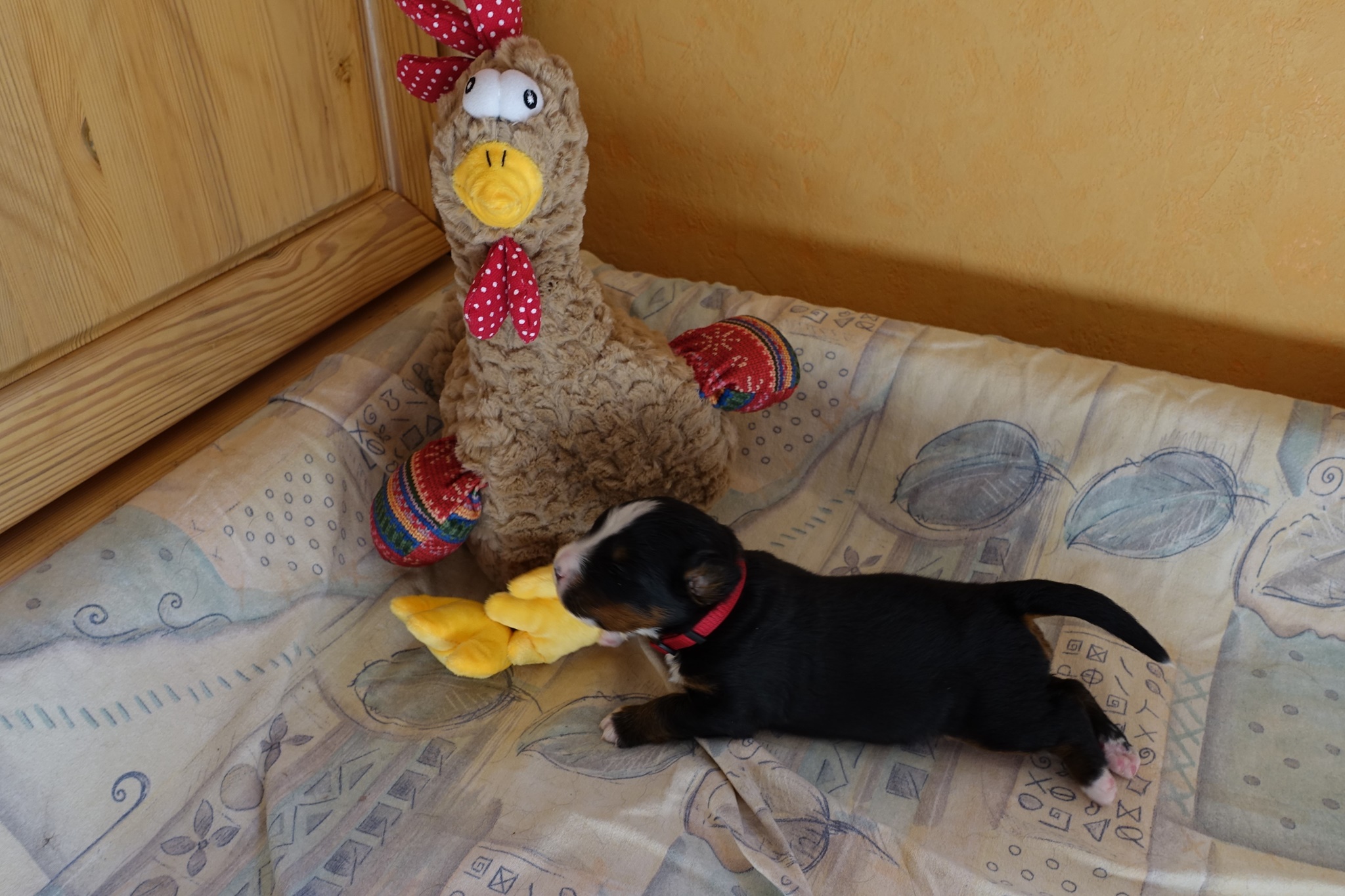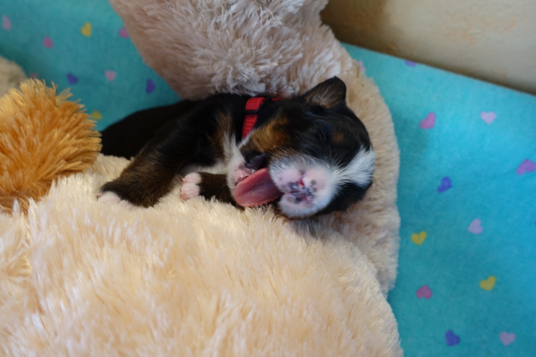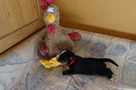 Oki wiegt zu Beginn der zweiten Woche bereits 1 Kilo. Er kann auf allen Vieren laufen und sitzen. Weiterhin ist er sehr zufrieden mit seinem Single-Dasein. Nachts höre ich von ihm keinen Mucks und er möchte auch nichts trinken. Zum ersten Mal werden die Krallen geschnitten.